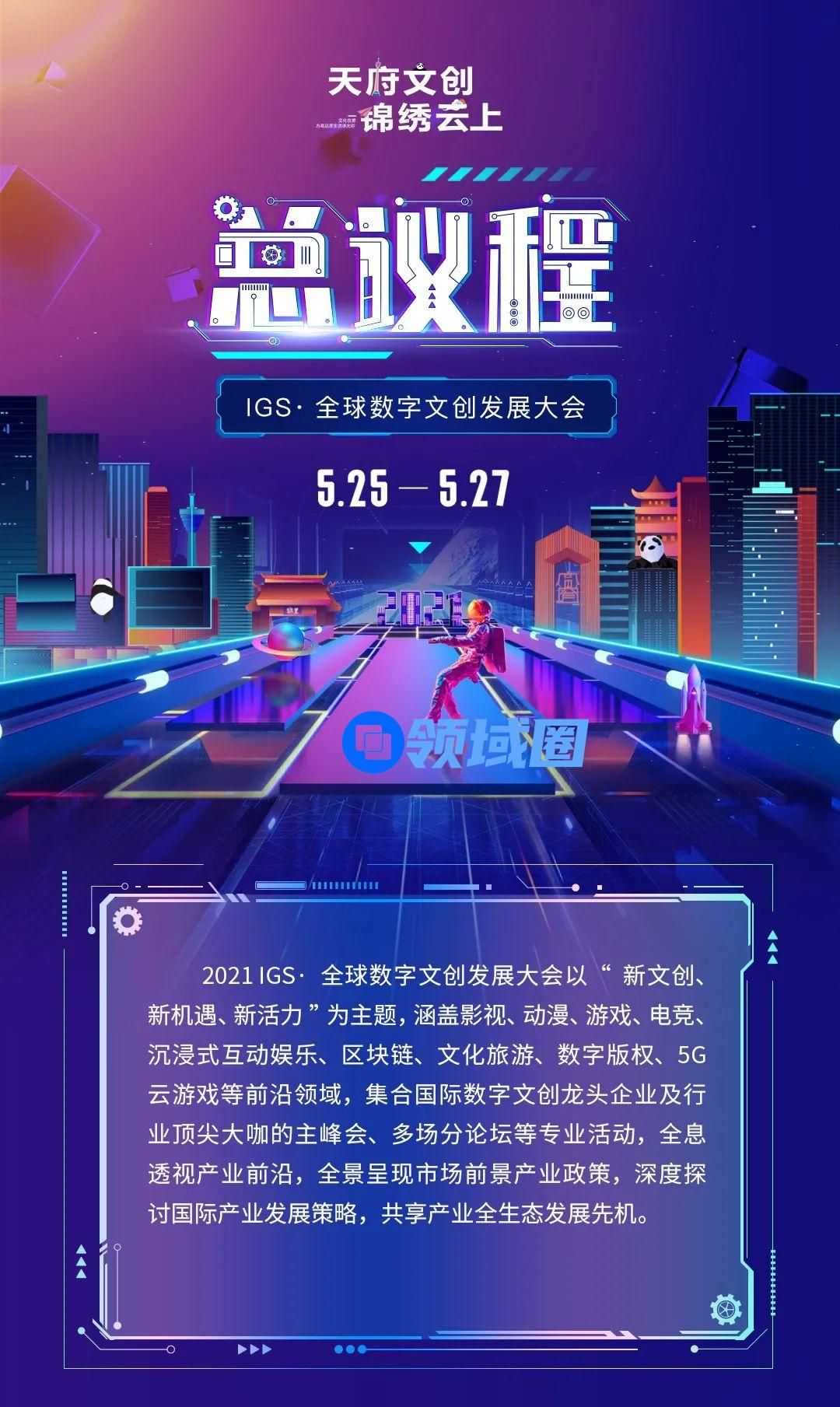 为加快建设具有全国引领力、全球竞争力的世界文化名城,向世界打响“成都·数字文创”金字招牌,5月25日至27日,成都将举办2021 IGS·全球数字文创发展大会。