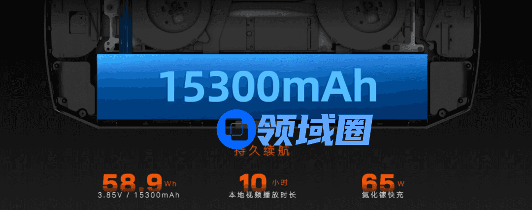 电池:恐怖的15300毫安大容量电池,是目前市面上常见移动设备的三倍以上。搭配前面我们提到的最高输出功率65V的氮化镓充电器,给OnexPlayer提供了极强的续航能力。