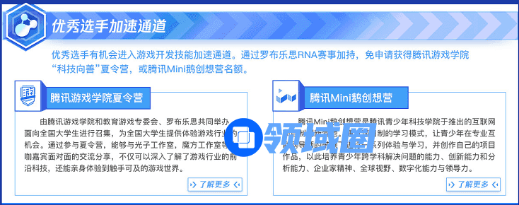 4、优秀团队可推荐加入腾讯花火计划。大学生团队可获得腾讯游戏学院夏令营名额,及罗布乐思实习和工作机会。青少年团队获得腾讯Mini鹅创想夏令营名额,和罗布乐思颁发的开发者认证。