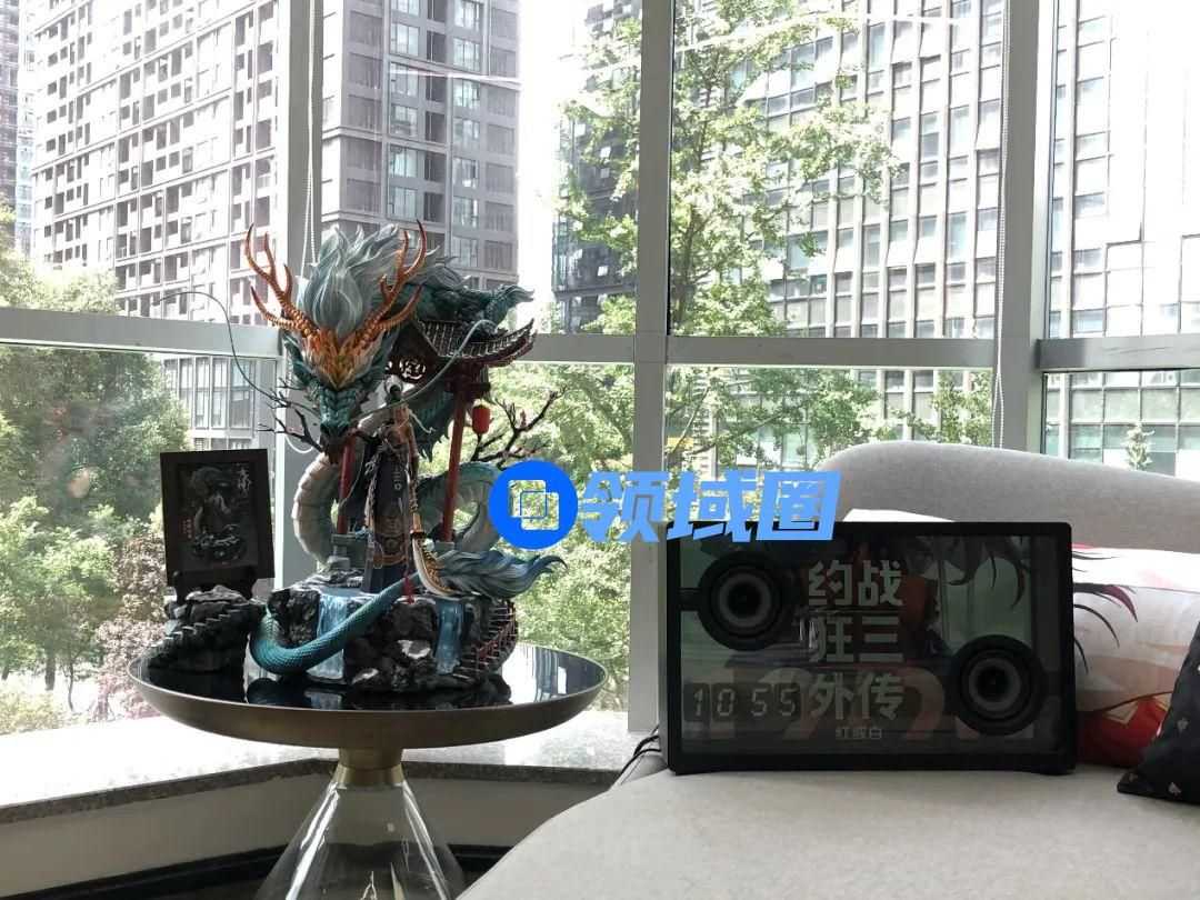 节能大厦的整个3楼是黑桃互动的主要活动区域,约1800平方米的楼层被黑桃互动全部包下。门口看板娘,墙上的挂画,大门口的欢迎字样,办公区域里摆满了手办与玩偶,墙壁上贴满了色纸、插画与声优老师的签绘,就连强哥自己的办公桌上野上摆满了手办,接待聊天的沙发旁,3头身高的“鬼切”正在凝视着过往的每一个人。
