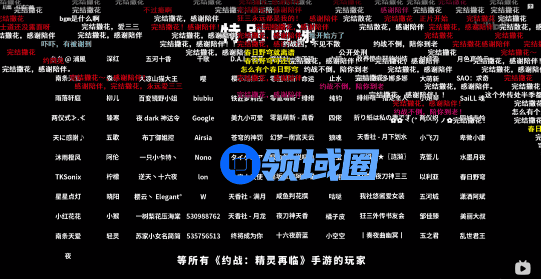 强哥点开了一个视频,那是超过1500万播放、在B站评分高达9.6分的《约战:狂三外传》,片尾的感谢名单上赫然写着大凉山制作组以及《约战:精灵再临》的玩家代表们,满屏幕都被粉丝们的鼓励弹幕占据。