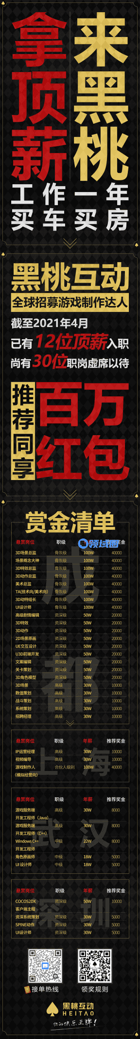 第三个,一视同仁。为了招募最顶级的人才,黑桃互动计划开出江湖悬赏令,拿出百万奖励,向业界寻求推荐。其中强哥认为顶薪人才的比例大概在10~20%区间,剩下的依是中基层人才,对于这部分,黑桃做到一视同仁的尊重。