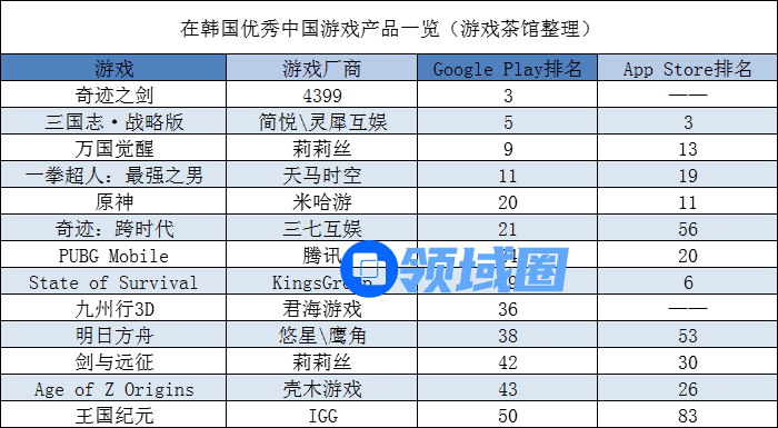 在本期榜单上,《荒野行动》(网易)和《奇迹之剑》(4399)分别是出海日本和韩国的收入第一名。