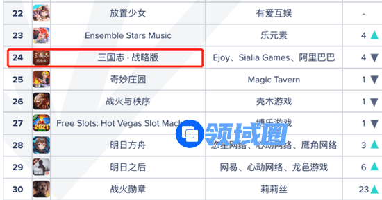 《三国志·战略版》进入了出海游戏前30名(App Annie)