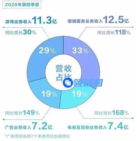 值得注意的一点是,从2020年Q4财报公布的营收结构来看,这是哔哩哔哩上市至今,游戏业务营收占比(29%)首次“退居二线”,被增值服务业务(33%)的营收所超过。