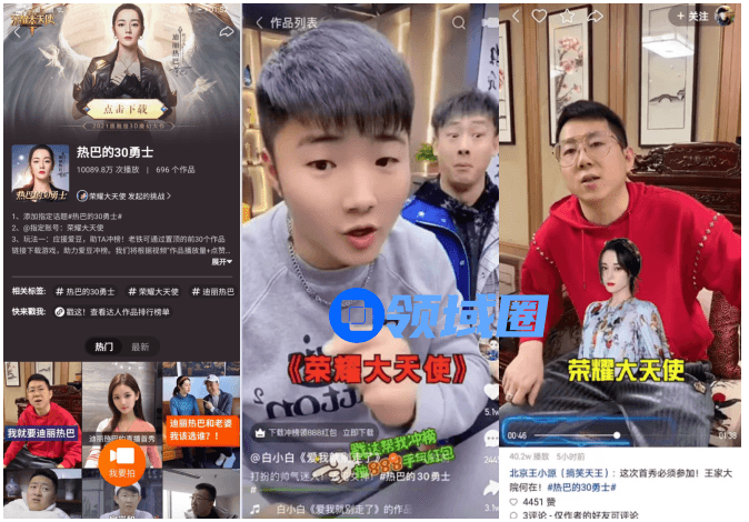 在首发起量达人玩法方面,今年年初快手和三七网游打造的《荣耀大天使》首发传播堪称经典案例。首先,针对Z世代群体的好奇心理,快手打出#热巴的30勇士#主题挑战赛,吸引年轻用户关注;随后,在迪丽热巴明星IP加持下,快手磁力聚星集结小沈龙、天津李四、许华升、许杨君等30位超头部达人,构建声势浩大的明星+达人传播矩阵,强势输出PGC和PUGC优质内容;粉丝用户则通过游戏组件等形式响应达人号召,助力打榜PK,创造海量UGC内容,最终实现3亿+活动曝光率,挑战赛视频总播放量高达1亿+,有效下载成本仅为49元,完成品牌曝光与高效转化的双赢。