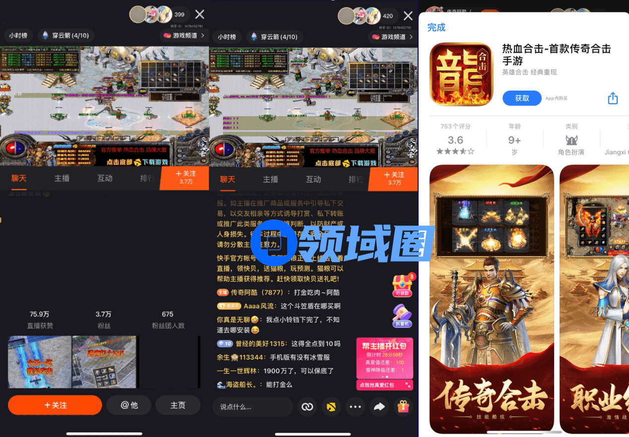 长效运营达人玩法方面的代表则是不老的传奇类游戏《热血合击》,作为历经20年不衰、积攒了大批长期稳定用户的游戏类型来说,长效运营达人玩法最为合适。在快手磁力聚星平台,快手主动帮助厂商挖掘撮合传奇类达人建立长期合作关系,助力厂商自建官方号和工会,为厂商新兴达人提供开白准入服务,同时通过直播流量助推游戏买量投放,实现游戏的长效运营。最终,该款游戏获得CPM80元,CPC7元,行为率远高于大盘1.2pp,有效下载成本低至50元的数据结果。