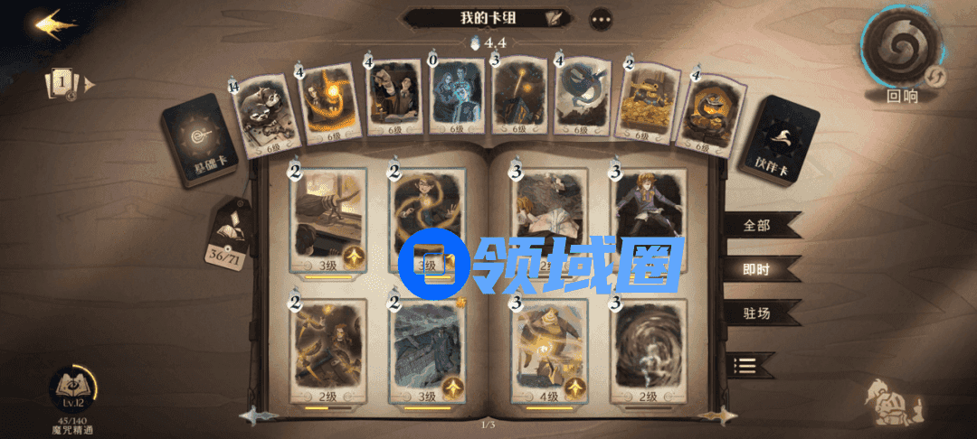 一套完整的卡组分为即时卡(魔咒)、驻场卡(神奇伙伴)、伙伴卡(同学老师)、以及回响(经典角色的记忆瓶),玩家需要通过构筑、调试、升级卡组,来更好的发挥实力。而从IP包装的角度来说,这些卡的设计既符合世界观设定,也通过卡牌故事让玩家侧面补充了原著剧情。