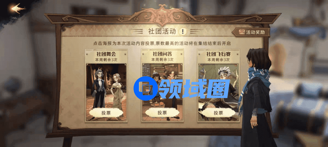 社团会提供三种活动供玩家游玩,分别是舞会、问答、飞行赛。有意思的是,这个活动每次都需要社团玩家投票选出。这无疑是一种增加互动的方式,虽然简单,但很有效果。