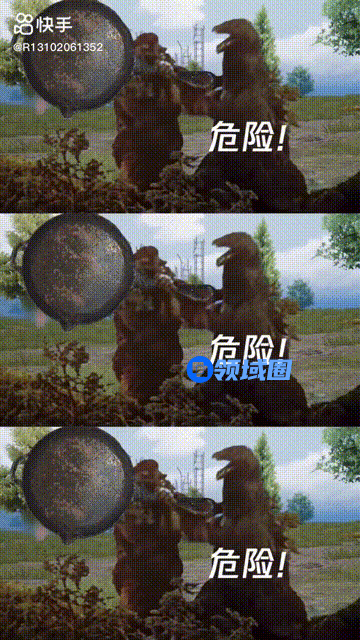 他们甚至翻出1962年的特摄剧,在《和平精英》的战场里复刻哥斯拉被捅脖子的名场面,只不过这次树枝变成了平底锅......