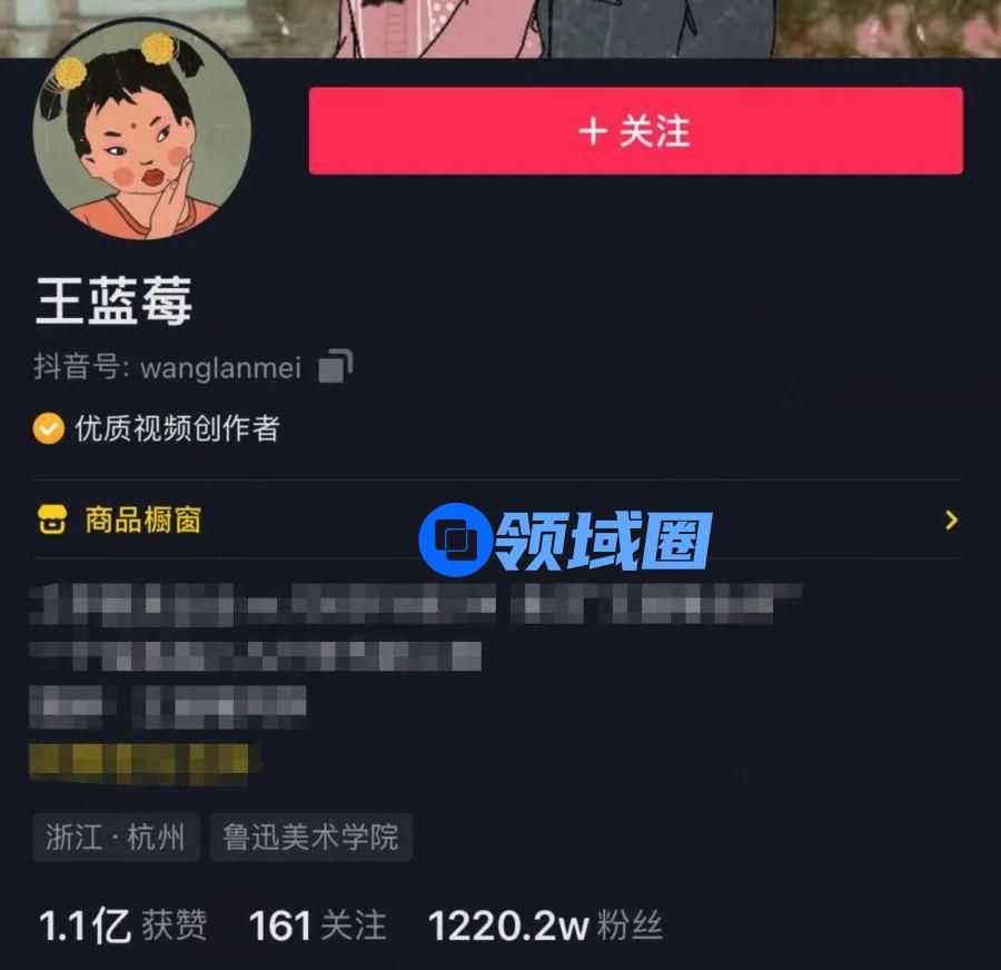 入驻抖音三年多,百来条视频,上千万粉丝,过亿的点赞量,这是王蓝莓创下的成绩,抖音官方在今年还为其颁发了“轻漫计划2020-2021年度创意风格奖”。