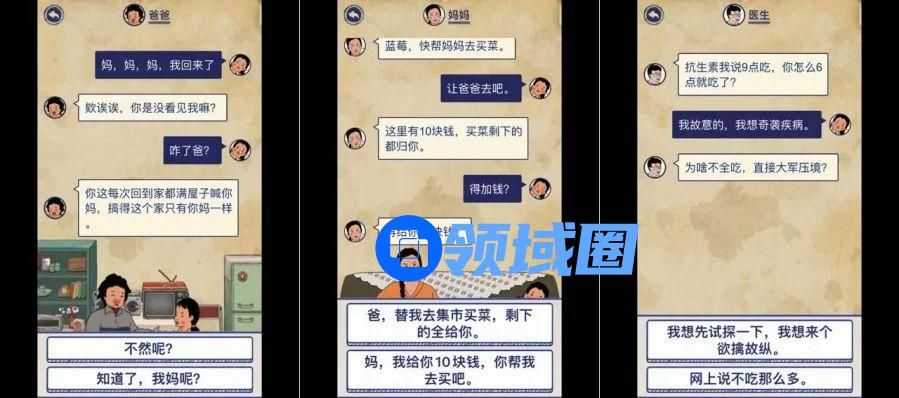 其二,妙趣横生的剧情对话。这块内容是游戏的精髓,对话多取材自网络段子或生活情景,玩家所扮演的王蓝莓每天都在与父母、老师“斗智斗勇”,而且每场对话还设计了1到3个正确答案,可以说这些对话的设计充满了“话术”,一个不注意,就会被官方所套路了。