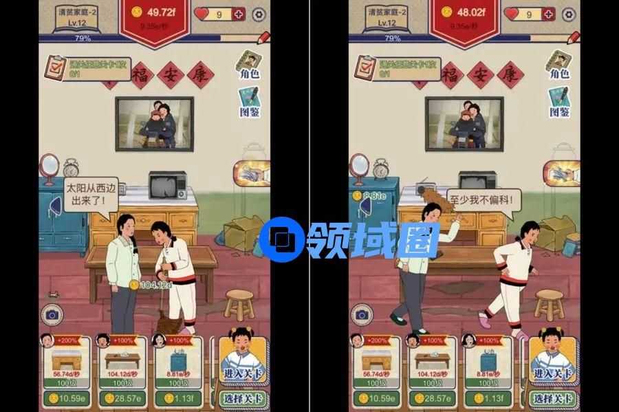 其三,藏在细节里的生活感与温情。游戏主场景并不是一张静止的场景图,翻箱倒柜找爸爸的私房钱是乐趣之一,看王蓝莓一家的互动小剧场更是引起了玩家们的共鸣。