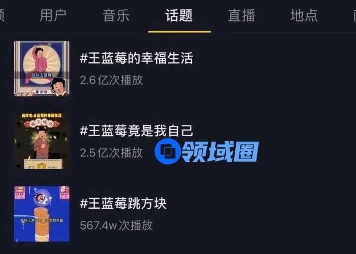 一整套组合拳下来,与游戏相关的话题「王蓝莓竟是我自己」在抖音平台热度持续走高,隔日冲上top10,且连续上榜三天,截至目前话题曝光量超过2.5亿次。