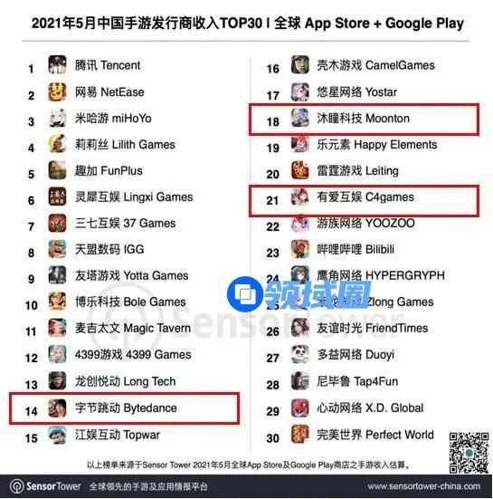 但这个排名第14显然是隐藏了不少实力的,事实上,字节跳动在TOP30名单中有3个业务主体,同期上榜的还有第18名的沐瞳科技、第21名的有爱互娱,而这两家公司,分别在今年3月、4月被字节跳动全资收购。