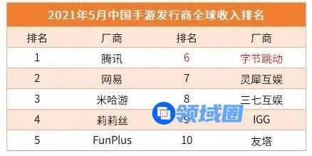 此外,手游单月收入被字节跳动超过的灵犀互娱、三七互娱都不是省油的灯,都在猛怼手游研发和海外发行。而排名第3、第4、第5的米哈游、莉莉丝、FunPlus都是业内各种高手,不仅产品成功率高、且已实现了研运一体化,各个都是难啃的骨头。