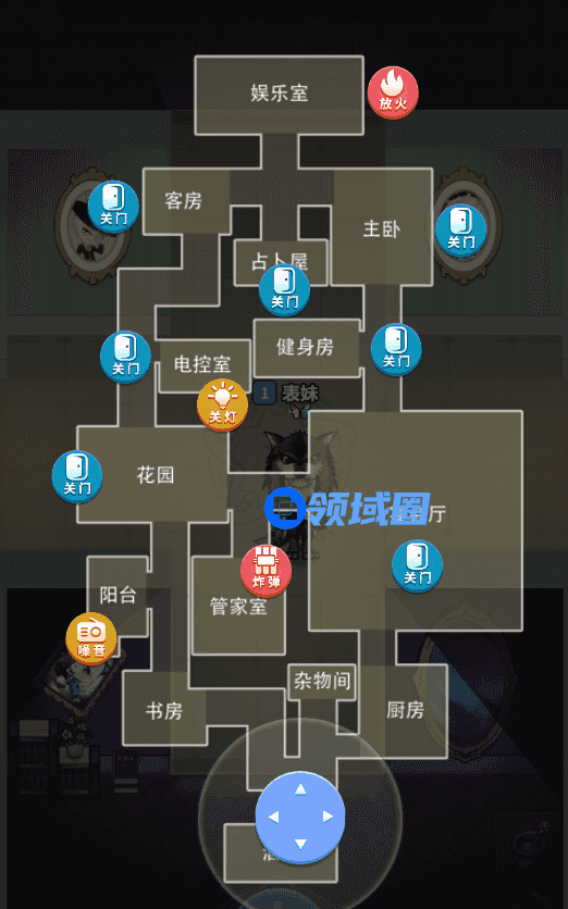 b) 炸弹:当“炸弹”紧急任务开启时,需要在40秒内分别剪断“管家室”和“杂物间”的炸弹引线。
