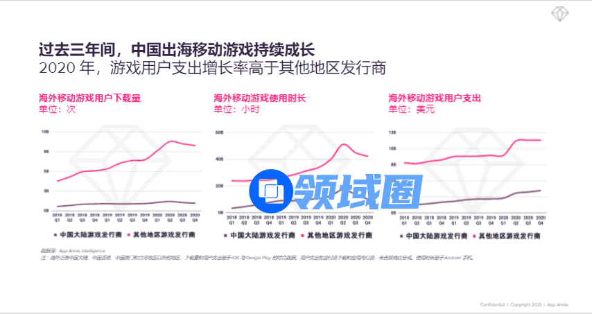 1.过去三年间,中国出海移动游戏持续成长,中国游戏海外影响力日益增强,营收增长跑赢大盘。