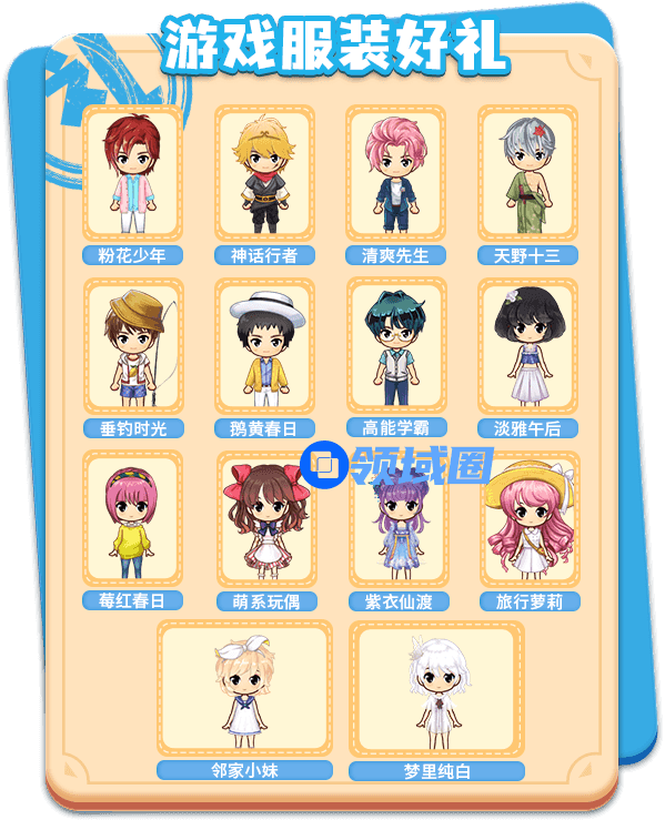 活动期间,只要您获得1次任意游戏胜利,即可获得1份幸运码!在每天23:59之后,从所有幸运码中抽取10位幸运玩家,挑选以下服装好礼!