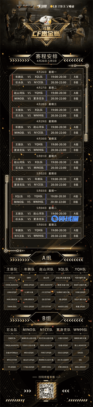 前三天小组赛的精彩战斗结束后,今晚七点将迎来小组赛第四天的赛事,A组在年鹏队和赵山河队之间展开较量, B组将在mino队和n1ce队之间展开较量,各小队将更进一步向冠军冲击,究竟谁能旗开得胜夺得冠军,我们拭目以待。对于想了解后续赛程安排的小伙伴可查看下图,锁定斗鱼直播平台(房间号:9767014)看各战队的强强对决吧。