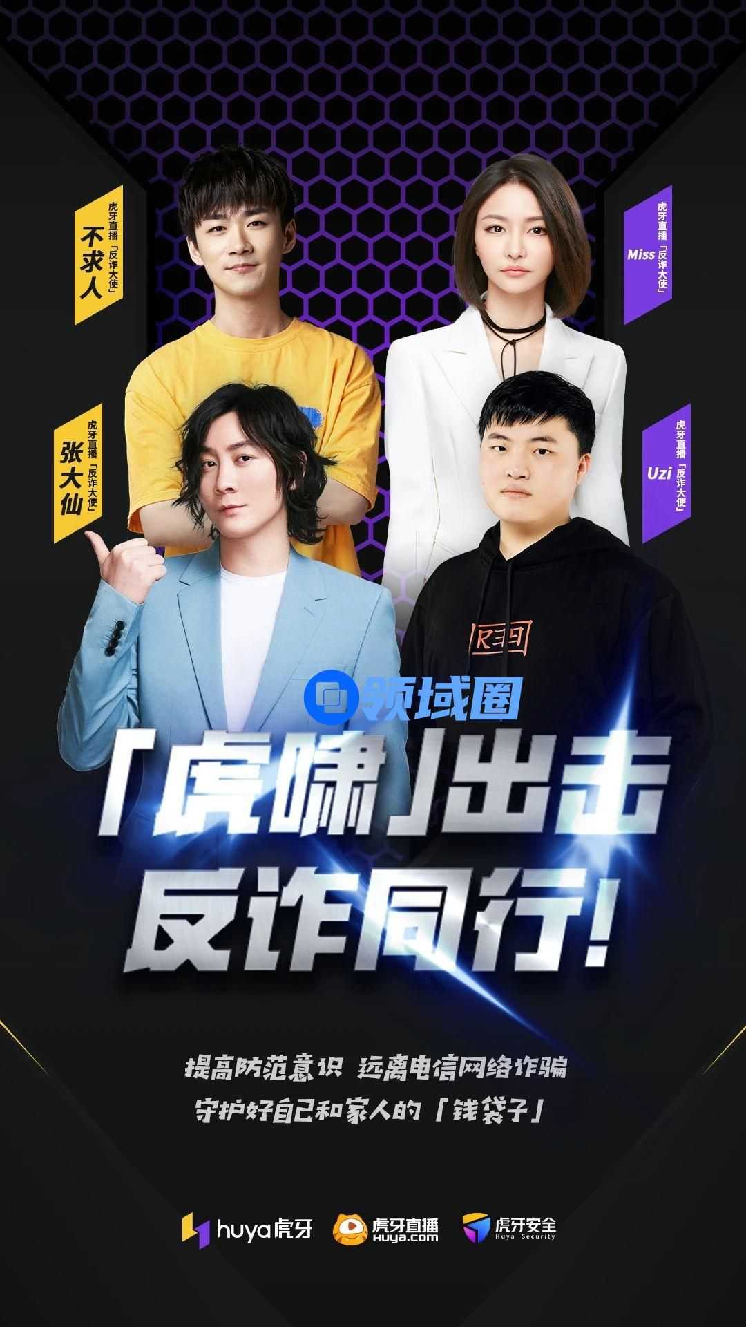 为进一步防范和助力打击电信网络诈骗,维护平台及用户权益,响应全民反诈号召,虎牙公司安全团队近日宣布正式启动“虎啸”反诈专项行动,落实“打、防、管、控、宣”五个维度,并邀请虎牙知名主播张大仙、Uzi 、Miss、不求人担任“虎牙直播反诈大使”,助力反诈宣传教育,提升用户防范意识,共筑网络安全“防护网”。