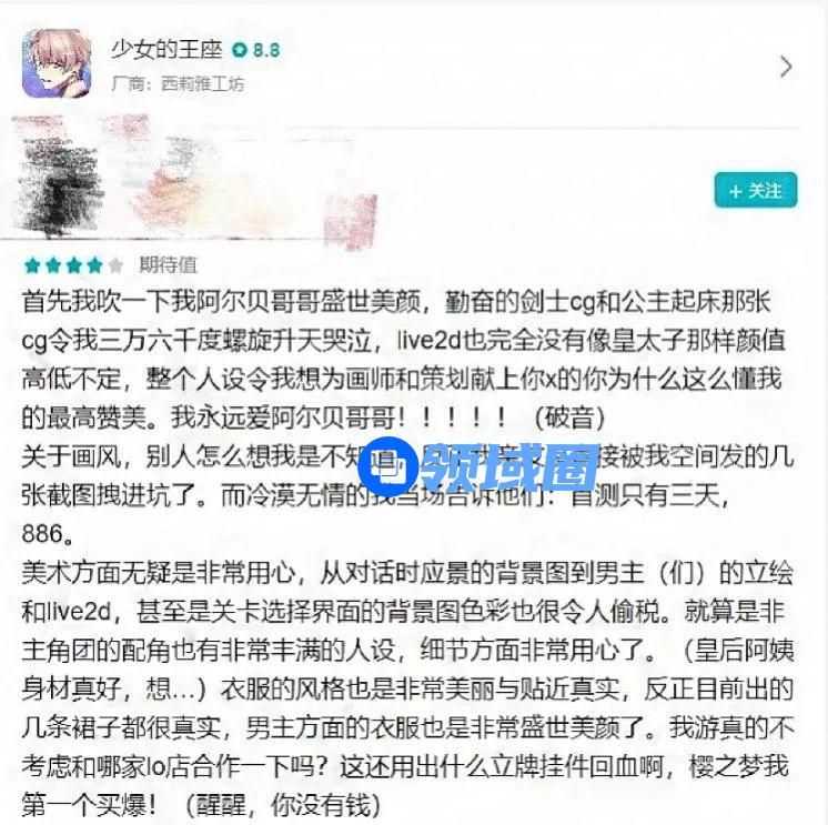 从以上种种表现,可以预见——《少女的王座》将是今年国产乙女市场爆款、人气王的有力竞争者。至于游戏的成绩,《少女的王座》已经进入公测倒计时,这个时间不会太久。