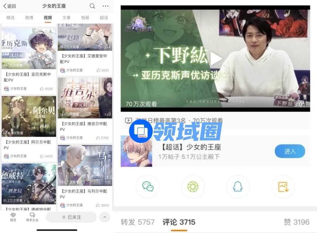 公测定档后,《少女的王座》官方微博也俨然成为了玩家们的半个社交聚集地。近期的几条关于CV的视频内容,播放量更是没有低于40W以下,好生热闹。
