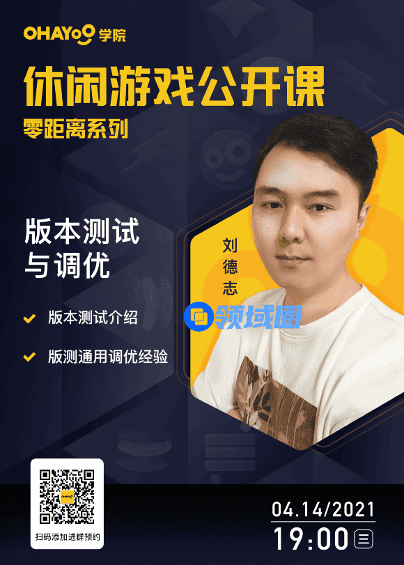 Ohayoo学院休闲游戏第六期公开课程将以直播课的形式于4月14号晚19点正式上线,扫描下方公开课助手二维码即可加入社群进行预约,或通过链接https://live.byteoc.com/4104/5527099也可直接进入直播间。