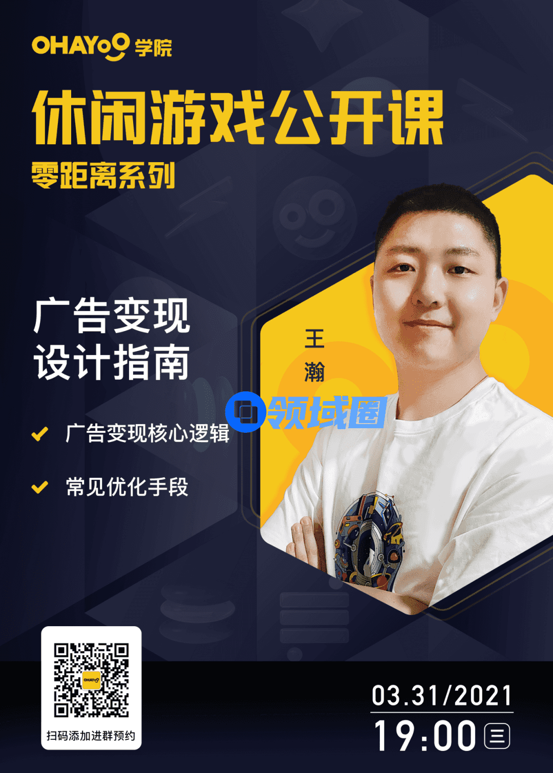 3月31日19点,Ohayoo学院休闲游戏公开课第五期课程即将开播!本期课程《广告变现设计指南》将为您揭秘休闲游戏广告变现核心逻辑,并分享一些常见的优化手段,助力开发者进行广告变现设计优化,收益升级。