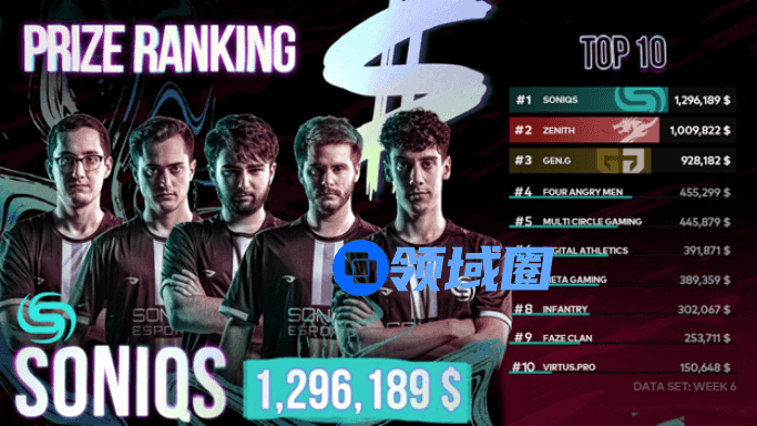 本次PGI.S最终大奖获得者,是来自北美赛区的强队Soniqs。在为期六周的比赛中,SQ共有四周成功晋级周决赛,虽然在本周开赛之前,他们仅仅位于排行榜第15名。SQ战队有着欧美队伍都较为擅长的刚枪能力,在赛事运营方面,他们过去的表现却似乎总是棋差一招。而谁也没有预料到,这支在前五周“韬光养晦”的队伍会在第六周的赛场上大放异彩。