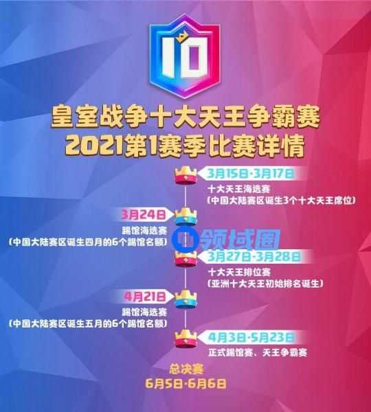 十大天王闪耀,孰能亚洲封王?本周六至周日每天18点,皇室战争全新官方洲际赛事——十大天王争霸赛就将全新起航。来自全亚洲的十大高手巅峰对决,全新金字塔冒泡赛制闪亮登场,更有挑战者踢馆环节以及团队赛的“复活”。满满全是看点的十大天王争霸赛,皇室迷们准备好了吗?