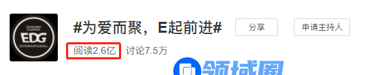 由于在电竞领域创造的卓越成绩,EDG战队受到了不少粉丝的喜爱,在微博上粉丝数高达559万,2021LPL春季赛EDG的slogan“为爱而聚,E起前进”的超话阅读量也已经突破2.6亿,电竞粉丝对于这支传奇战队的关注度可见一斑。