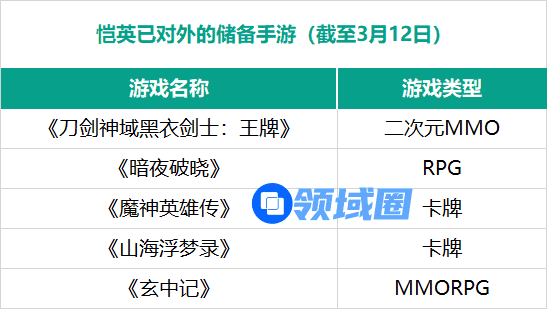 “研发、发行、投资+IP”的三核驱动,让恺英的产品储备在短时间内丰富了起来。据手游那点事统计,恺英的产品储备超过5款,涵盖了卡牌、MMORPG以及二次元这几个赛道。
