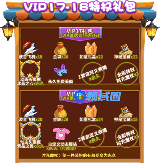 当您达到VIP17后,可获得“时光魔杖”专属特权!消耗1枚“时光魔杖”,将背包中的一件装扮的有效期变为永久!