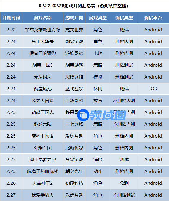 下周即将进行测试的大厂有完美、网易、游族、三七和朝夕光年等。
