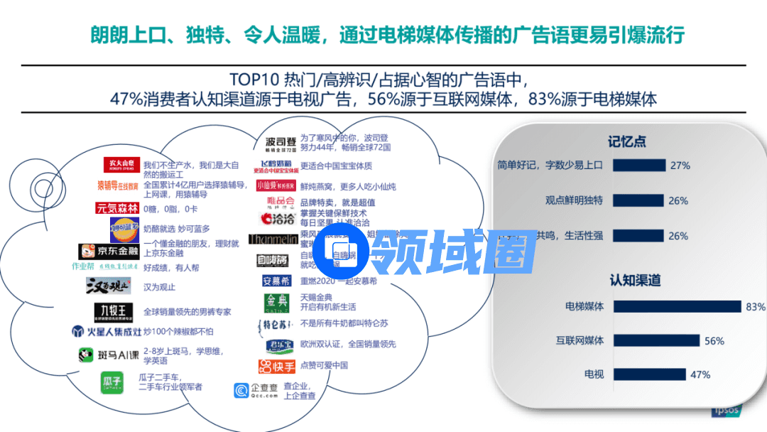 Ipsos的调研报告显示,2020年中国流行广告语记忆83%都源于分众电梯媒体,分众已经日益成为这个时代屈指可数的品牌引爆的核心阵地。