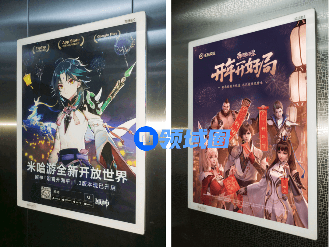 流量红利结束,流量成本不断上升,具有较长生命周期的游戏大作开始向品牌化进军。2月,《神武4》、《大话西游》、《王者荣耀》、《万国觉醒》、《原神》、《原始传奇》等游戏争相霸屏分众电梯媒体,用春节发红包、抽神兽等福利吸引用户。策略养成、角色扮演、二次元……各大游戏类型纷纷布局线下分众电梯媒体,进行轰炸式品牌营销宣传,这也成为了近年来游戏行业不可多得的景观。