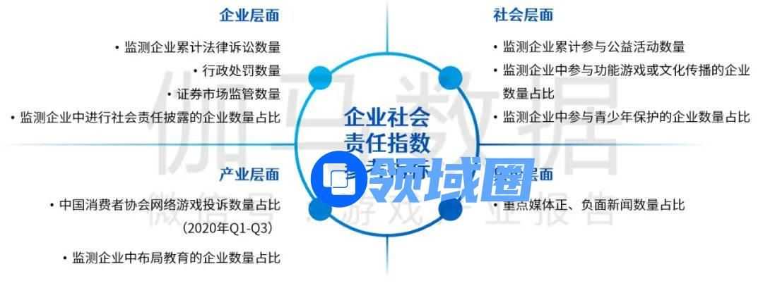 为了更好地评估各游戏企业社会责任承担状况,伽马数据建立了游戏企业社会责任评估模型,从企业层面、产业层面、社会层面三个维度构建模型,并引入舆论层面监测社会重点关注问题作为第四个维度,多方面对企业社会责任履行成果进行考察,并对多家社会责任履行较好的游戏企业进行逐个分析。