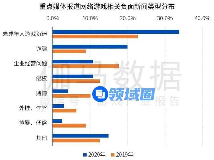 但是,从2020年重点媒体报道网络游戏相关负面新闻类型分布情况来看,未成年人游戏沉迷仍是亟待解决的首要问题,未成年人游戏沉迷的报道,在整个负面类报道中占33.8%,比去年的22.8%还高不少,说明了2020年10月新《未成年人保护法》确立多项网游未成年人保护要求新修订,是极为必要的。