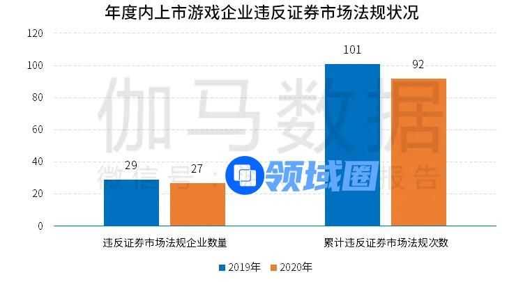 备注:违反证券市场法规指企业直接受到的由证监会下发的法律法规处罚,以及收到监管函且证监会明确指出行为违规的相关上市游戏企业。