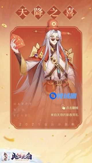 别急,后面还有惊喜!壕气boss——天尊压轴登场,他手中拿有四个大红包,仙君们可以每日前来抽取一次。不仅包含“天”“降”“之”“喜”和神秘礼包等五种大奖,还会有周边好礼从天而降,超高中奖率让你脱非入欧,新的一年就要来波大的!