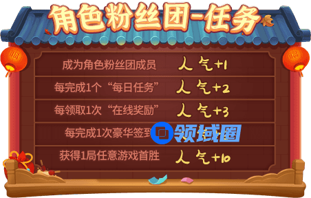 1. “角色粉丝团”任务每日重置,玩家已获得的“人气值”不清零;