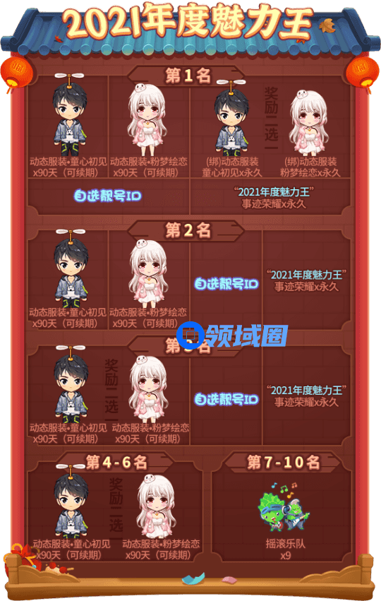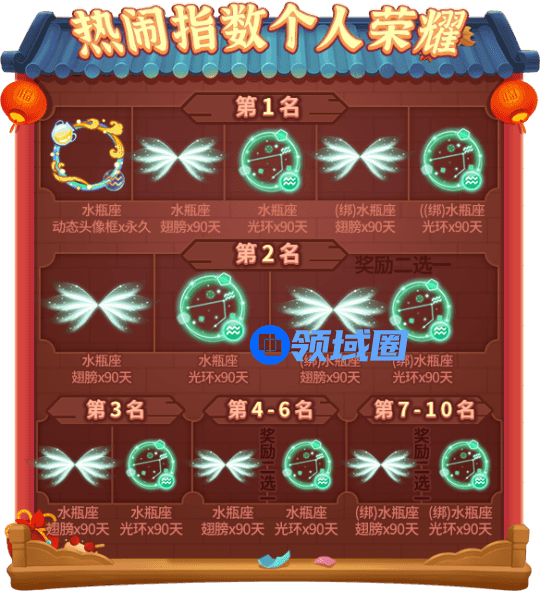 在活动结束后,积攒”热闹指数”最高的前十位玩家能够获得以下奖励:
