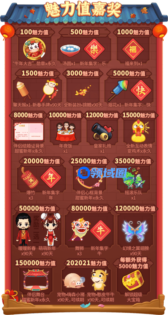 8. 当累计获得202021魅力值后,每额外获得5000魅力值即可开启一份“超级大宝箱”;