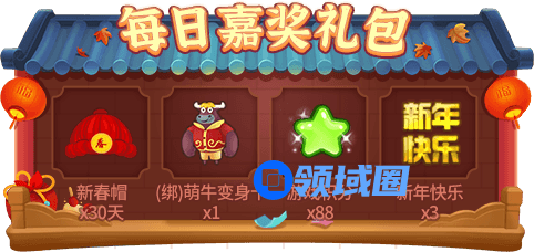 每局累计获得3份奖励:额外随机赠送一份:爆竹、花灯、金猪存钱罐