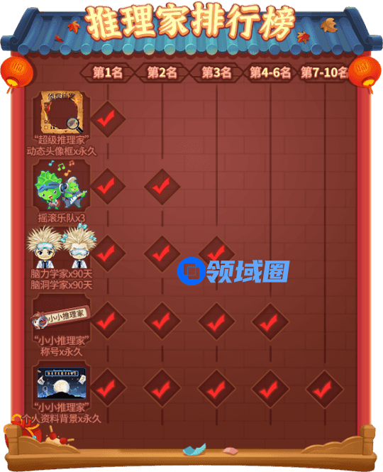 在活动结束后,为推理家排行榜上前10名玩家发放特别礼物!