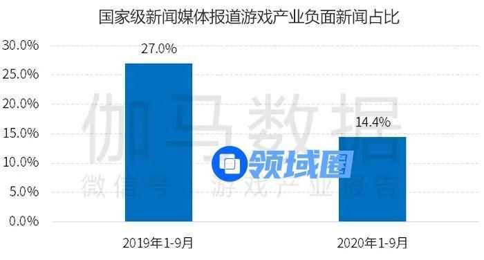 伽马数据(微信号:游戏产业报告)发布的《2020中国游戏产业品牌报告》显示:2020年1-9月国家级新闻媒体对游戏产业的报道中,负面新闻占比为14.4%,相比于2019年1-9月负面新闻占比明显下降,这也说明游戏产业整体的品牌建设状况向好。
