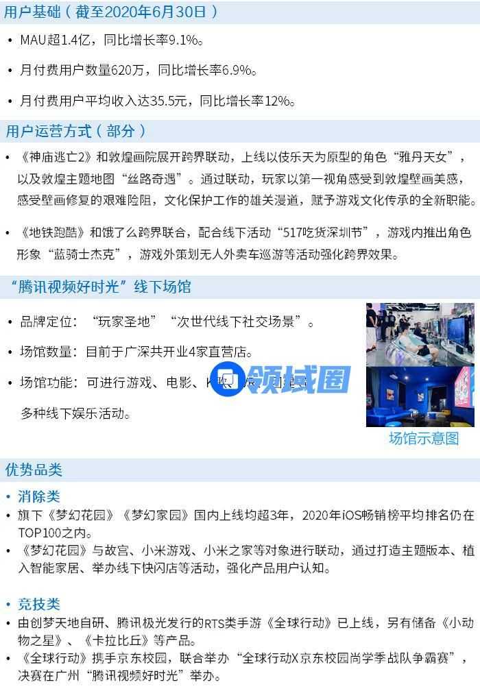 基于不断探索和创新,创梦天地已成为行业发展较优的线上线下融合的数字娱乐平台,赋能品牌深层内涵。线上方面,创梦天地已形成“益智消除”“休闲竞技”两大赛道品牌优势:位列国内消除类产品TOP3的“梦幻”系列将消除玩法与模拟经营、RPG等元素相结合,实现品类创新,同时借助差异化的品牌特性吸引较多用户关注;竞技方面,创梦天地自研产品《全球行动》已上线,储备产品《小动物之星》已开启测试,并借助电竞战队、电竞赛事、“腾讯视频好时光”等优势品牌形成串联,多场景共同塑造“电竞”品牌标签。线下方面,创梦天地与腾讯合作创办的“腾讯视频好时光”是全国首个体验式娱乐零售街区,凭借多元的功能覆盖和先期经验的总结迭代,不断贴合、贴近次世代用户娱乐需求。同时,现有场馆可实现主机游戏、电影、电竞、K歌、团建等多种常见线下娱乐形式,相较传统娱乐场所更为广泛、集中覆盖用户需求,打造线上线下流量闭环。此外,新增场馆单店面积集中在300~500平方米左右,更易寻找满足用户流量、场馆成本、商圈范围等多维需求的合适场地,拓展用户辐射范围。最后,历史成果已为创梦天地带来较为庞大的用户基数,演化成平台转型优势之一,截至2020年上半年,企业旗下产品月活跃用户总量过亿,付费用户数也达到百万人次,为企业现行及未来数字娱乐平台拓展提供用户支持,而“腾讯视频好时光”、优势赛道等布局有望凭借各自发展战略,持续吸引非交叉用户,进一步为企业用户基数充能。