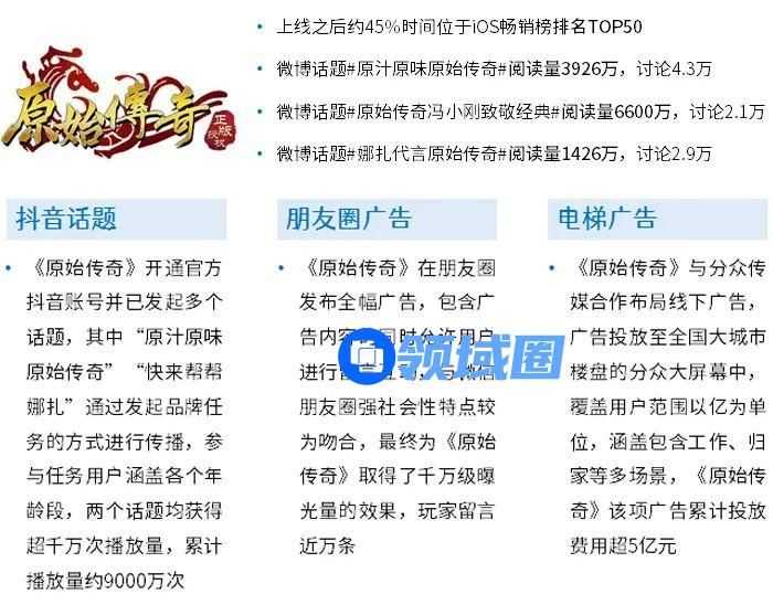 《原始传奇》在产品推广方面发力,成为深挖渠道推广品牌的典型案例。产品借助渠道进行推广的前提是确定推广展示内核,《原始传奇》依托成熟的发行经验,针对产品特性及明星属性圈定代言人选择范围,并通过多层筛选确定与自身品牌最为相恰的人选,为后续发力多渠道推广打下基础。渠道推广方面,《原始传奇》从微信、微博、抖音等多个媒体渠道及流量平台发力,并针对强社交属性、粉丝聚集地、高用户参与度等不同渠道品牌标签制定产品品牌个性化推广方案,有利于强化用户信息接收度。此外,《原始传奇》在线下渠道进行布局,覆盖全国楼宇电梯和出租车体广告,极大程度提升用户触达广告概率及频率,同时,“原始传奇电梯广告”引起部分话题讨论,较为新颖的推广方式一定程度上影响用户对于“传奇”IP整体印象,并在其中突出《原始传奇》品牌认知。渠道产品相结合、同IP产品中高品牌认知为《原始传奇》带来较多用户关注,百度搜索指数峰值过万,在主打“传奇”品牌的产品中表现较优。