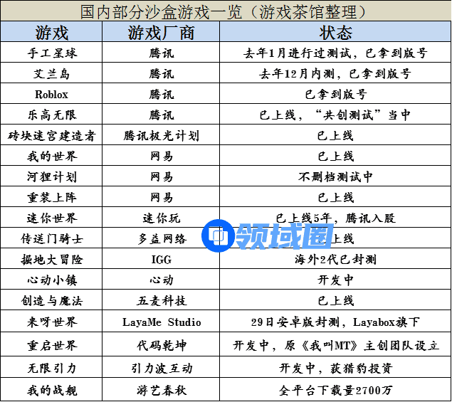 沙盒游戏大热之下,游戏茶馆梳理了国内厂商目前手中的沙盒游戏项目。此外,沈宏庭透露他们也有两款沙盒概念手游在开发当中。